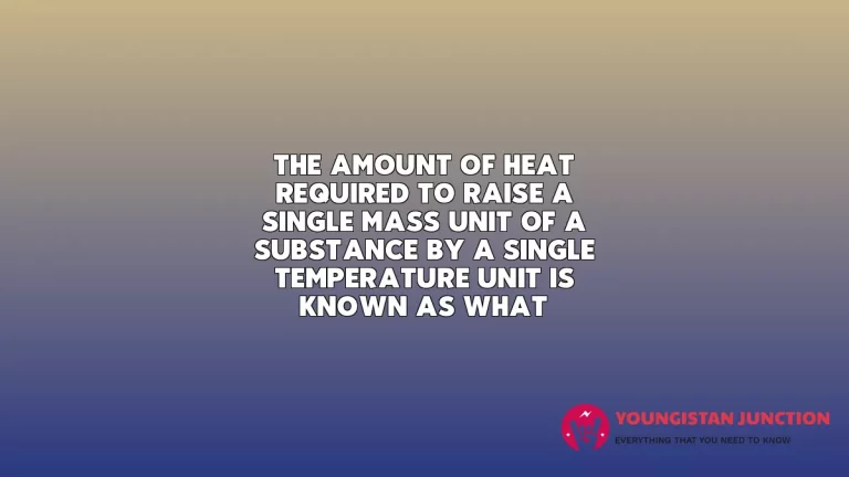 QuestionThe amount of heat required to raise a single mass unit of a substance by a single temperature unit is known as what?Know MoreThe amount of heat required to raise a single mass unit of a substance by a single temperature unit is known as what?Youngistan JunctionJune 21, 2025