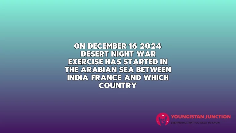 QuestionOn December 16, 2024, ‘Desert Night’ war exercise has started in the Arabian Sea between India, France, and which country?Know MoreOn December 16, 2024, ‘Desert Night’ war exercise has started in the Arabian Sea between India, France, and which country?Youngistan JunctionMay 25, 2025